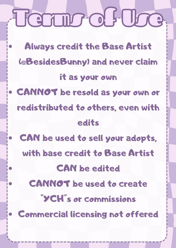 - CAN be used to sell your adopts, with base credit to Base Artist (@BesidesBunny)